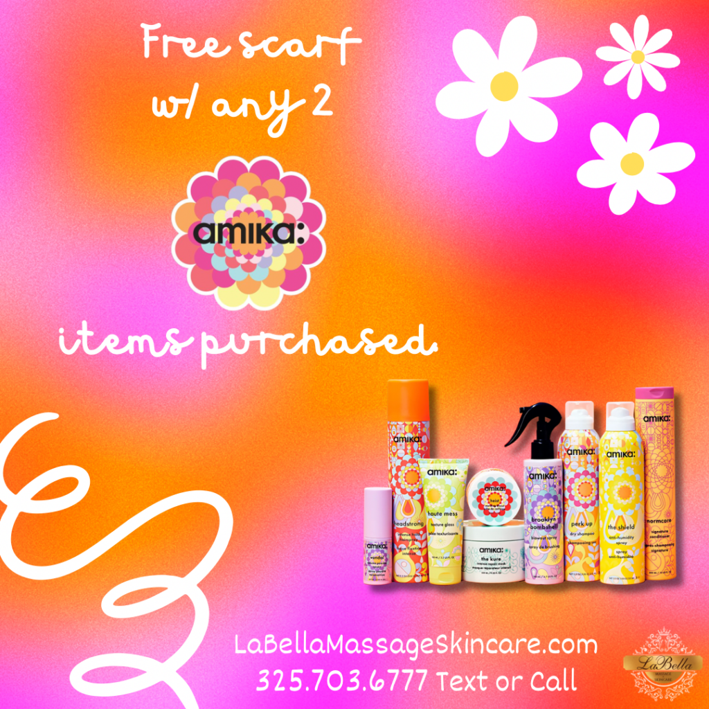 Buy any 2 Amika items and receive a FREE scarf (while supplies last).