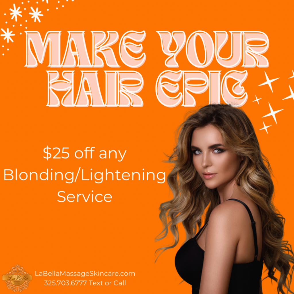 Ready to go brighter for spring? Enjoy $25 off any Blonding or Lightening Service at LaBella.